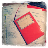 Parece que comenzar a seguir a Marta y a conocerla un poco es mantener una extraña relación con los cuadernos rojos, que aparecen cíclicamente. El domingo pasado Marta publicó la foto que ilustra este post, cuyo centro ocupa otro cuaderno rojo. Y esta foto, hecha por ella misma y donde no se la ve, es de esas fotos que me encantan porque me transmiten mucho. Además de ser estéticamente bonita, activa mi imaginación. Sin palabras, una sola imagen, esas notas manuscritas (lástima que no puedan leerse), documentación impresa, los subrayados de ese artículo del El País, el borrador de la entrevista, ese cuaderno rojo. Dice tanto esa foto.
