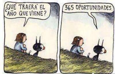 Y deseos para el año nuevo, no me los propongo. La peor manera de empezar el año es ponerte objetivos, es la forma más sencilla de que te decepcione. Prefiero vivir día a día e intentar aprovechar lo que se ha aprendido para no volver a cometer los mismos errores y que esto sea sea mejor. Me quedo con la viñeta que ilustra el post y que descubrí ayer en Facebook.