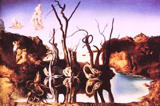 Pensando en eso y sintiendo esa extraña sensación, eché un poco la vista atrás a las últimos libros que había leído y es cierto que con todos me había pasado que veía imágenes. En la mayoría normales, como cualquier película, pero algunos de los que más me habían gustado por originales me habían traído imágenes «extrañas», como ese 1Q84 o, por compensar mi sacrilegio Pynchoniano de antes, El arco iris de la gravedad. Recordando las imágenes que me evocaba en general me di cuenta que era como vivir en un Dalí. La realidad se distorsionaba y todo parecía flexible. Nada fuera verdad o mentira, como en el cuadro que ilustra el post. Una sensación extraña pero muy placentera porque os aseguro que no fue un análisis consciente sino que mientras leia el libro eran imágenes de ese estilo las que acudían a mi mente.