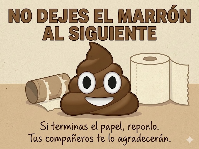 Creo que el cartel es bastante explícito y estoy a nada de colgarlo en el baño de mi oficina. No obstante, te cuento un poco sobre este marrón.