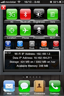 Pero no es todo lo que hace. También podemos poner ciertas aplicaciones en una especie de dock particular que trae el programa, para tenerlas siempre a mano, escribir notas rápidas, examinar los procesos que están en marcha en el iPhone para ver que se nos está comiendo la bateria y/o la memoria… Pequeñas funciones de mantenimiento y para facilitarnos el trabajo. Sin duda muy muy útil y de nuevo una pena que Apple no la autorice. Supongo que será por tocar cosas básicas del sistema como los procesos o activar funciones sin pasar por el camino marcado por Apple.