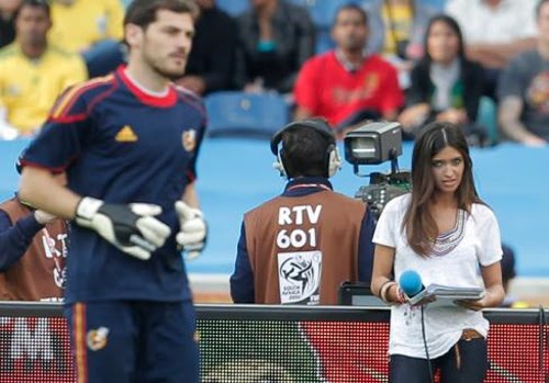 Pero no es de esto de lo que quería hablar, sino del asunto de moda: la relación de Sara Carbonero con Iker Casillas. Presentemos a los personajes, para los que no estén muy al día. El es el portero del Real Madrid y de la selección española. Por tanto, como es lógico, está en Sudáfrica jugando el mundial con España. Ella es una de los rostros de la información deportiva de Telecinco, fichada a La Sexta hace como 2 años por su cara bonita (literalmente hablando) para cubrir, entre otras cosas, los grandes eventos deportivos que retransmite Telecinco, que tampoco son demasiados.
